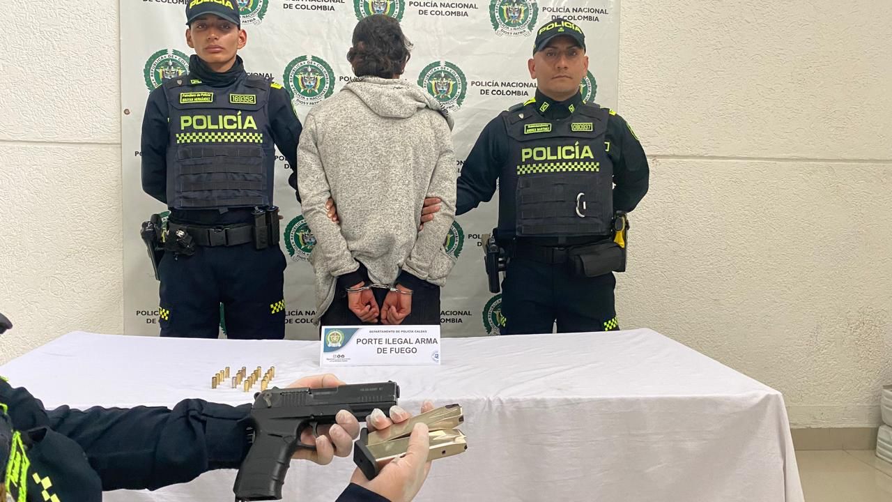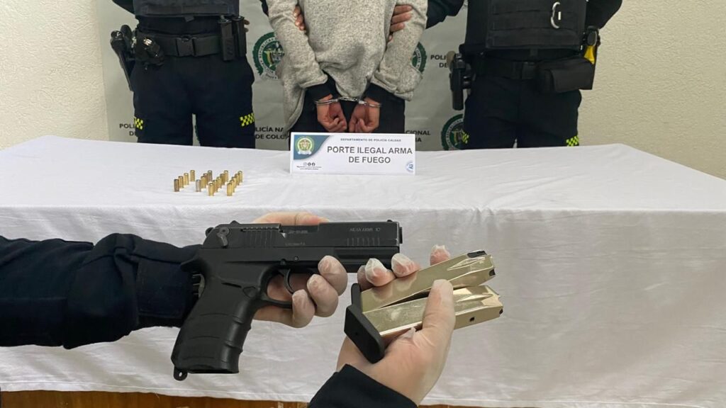 Según verificación en el Sistema Penal Oral Acusatorio (SPOA), el capturado, conocido con el alias de “Leo”, registra antecedentes judiciales por homicidio, porte ilegal de armas de fuego y tráfico de estupefacientes. Asimismo, se conoció que hace ocho meses había recuperado la libertad tras cumplir una condena de nueve años de prisión por un homicidio ocurrido en el barrio San Sebastián de Manizales.